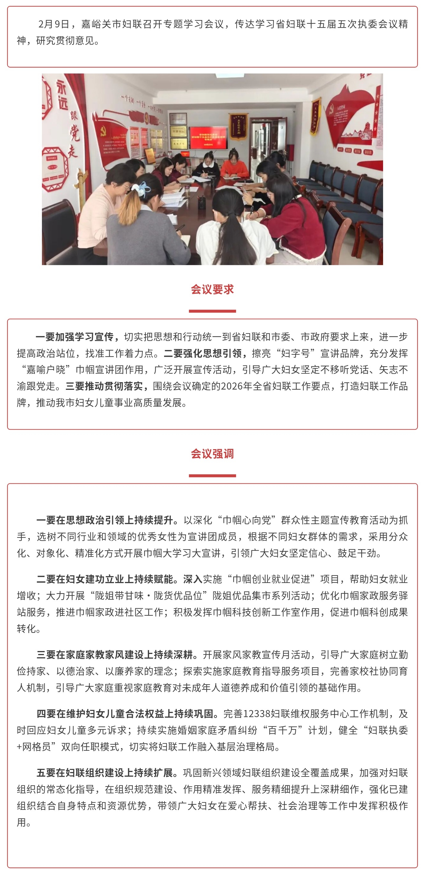 嘉峪关市妇联传达学习省妇联十五届五次执委会议精神